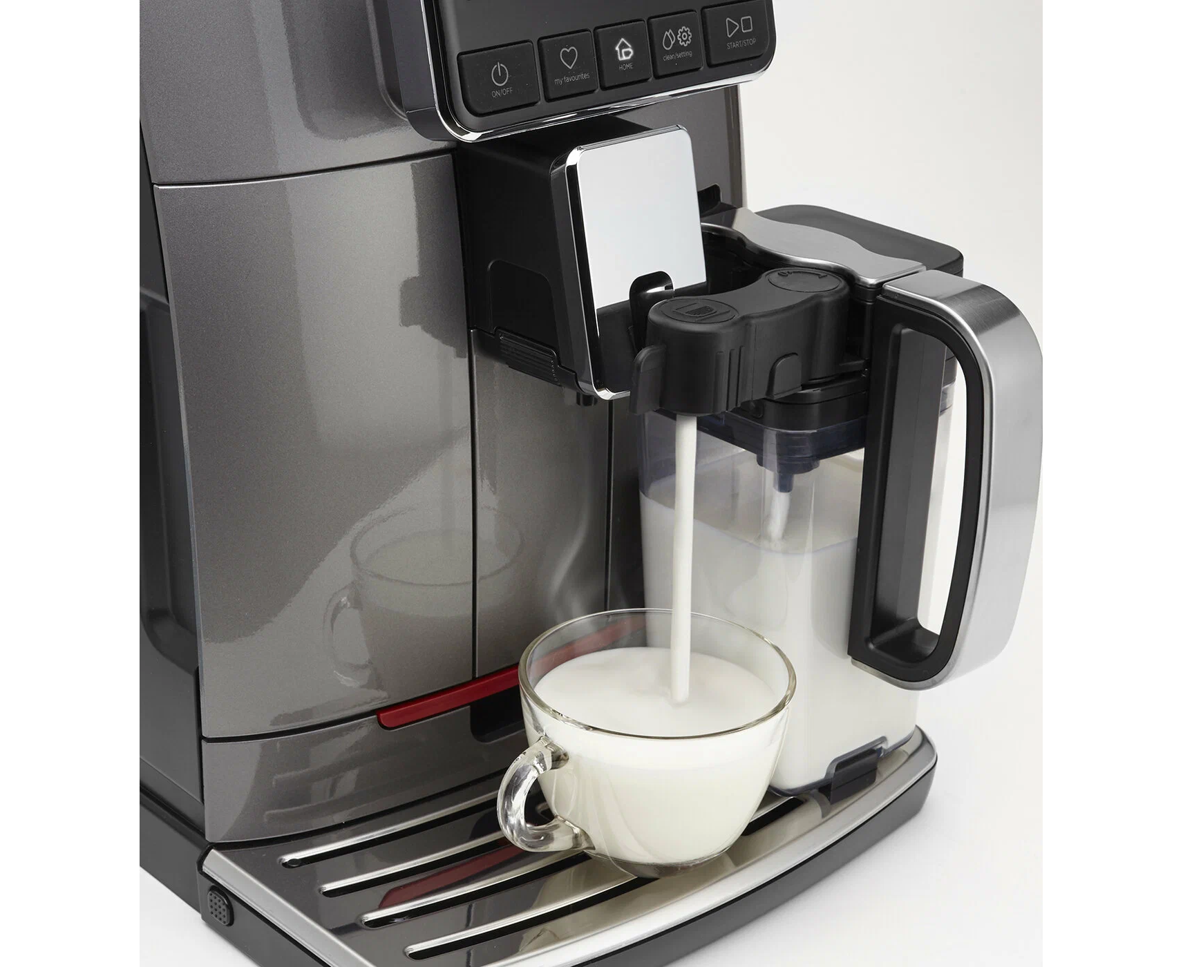 кофе на порцию 7-12 гр; счетчик порций; контейнер отработанного кофе на 15 порций; 5 степеней помола; энергосберегающий режим; регулируемый по высоте диспенсер; автоматический цикл очистки при старте и выключении; 4 персональных профиля любимых кофейных напитков; автоматическая очистка от молока; контейнер молока: съемный графин 500 мл