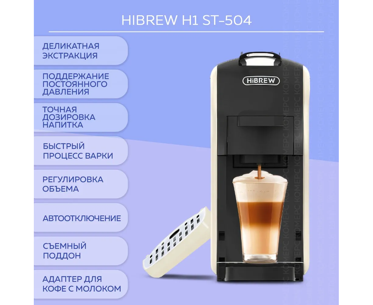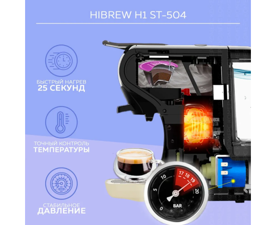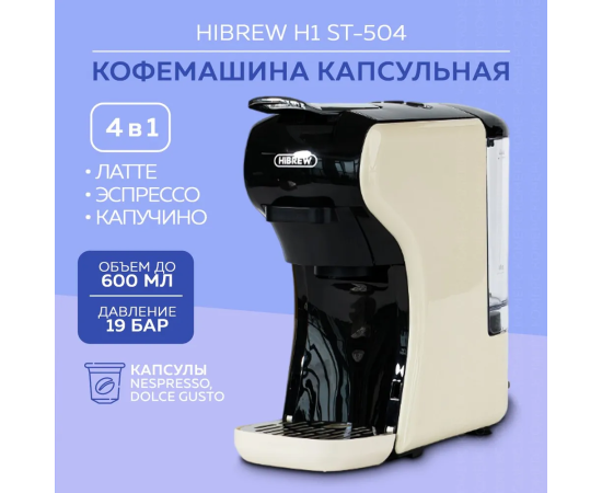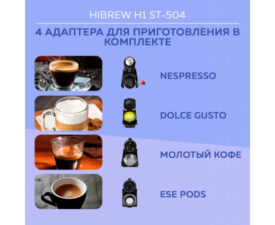 Капсульная кофеварка HIBREW ST-504 предназначена как для приготовления кофе с помощью капсул, так и молотого кофе. Она совместима с самыми распространенными типами капсул известных брендов и имеет в комплектации адаптер для молотого кофе. Широкий спектр настроек позволит приготовить чашечку крепкого вкусного кофе в соответствии с вашими предпочтениями и удовлетворит вкус даже заядлых кофеманов.