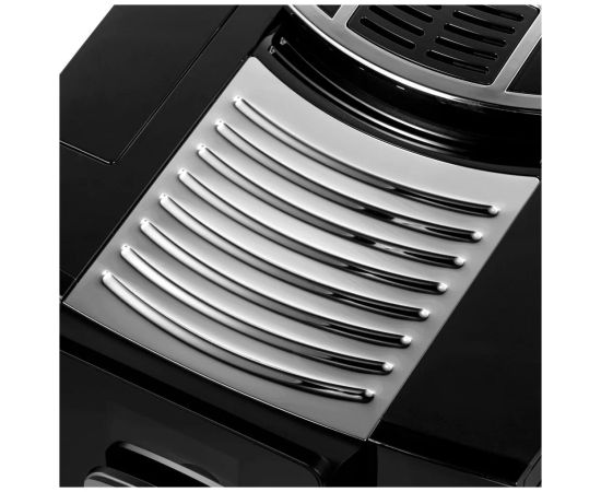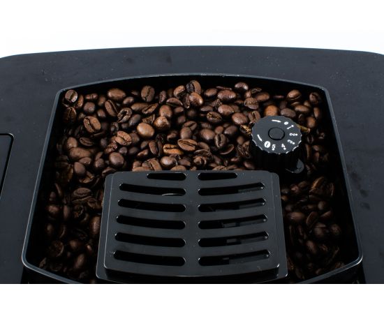 Машина может приготовить капучино с помощью одной кнопки и оснащена LCD-дисплеем и поворотным регулятором для выбора помола, крепости кофе, температуры воды, объема кофе, а также объема, температуры и текстуры молока.