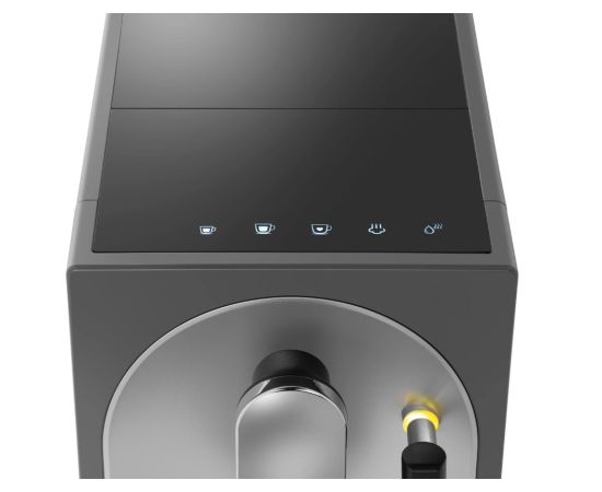• Регулировка дозатора по высоте Дозатор кофе можно регулировать по высоте, благодаря чему кофемашина всегда аккуратно нальёт напиток как в маленькую чашку для эспрессо, так и в большую чашку для американо. Кофемашина автоматически включает подсветку рабочей зоны, поэтому контролировать приготовление напитка удобно даже в тёмном помещении