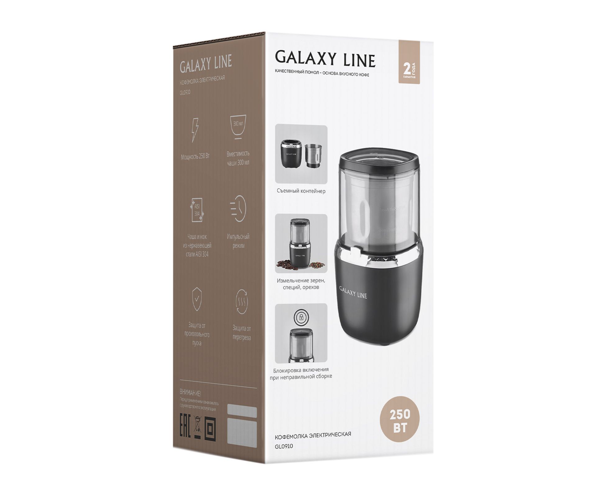 Galaxy Line GL0910 — компактная и мощная кофемолка, которая быстро превращает зёрна кофе, специи и орехи в ароматный порошок, сохраняя максимум вкуса и свежести. Съёмный контейнер и крышка из нержавеющей стали обеспечивают удобство очистки и герметичность, предотвращая разбрызгивание. Импульсный режим позволяет добиться желаемой текстуры помола — от грубого до мелкого, что идеально подходит для разных способов приготовления напитка. Надёжные системы безопасности исключают случайное включение и перегрев, делая использование устройства комфортным и безопасным.