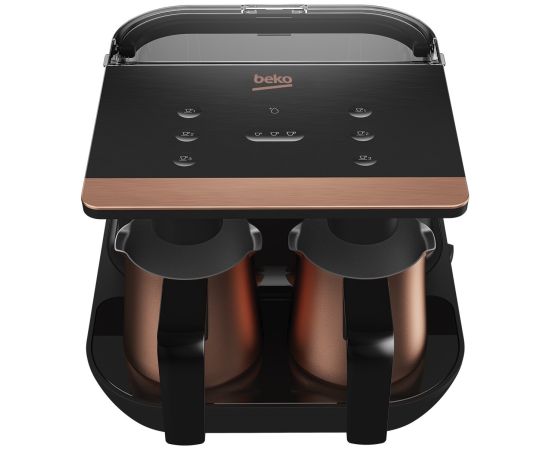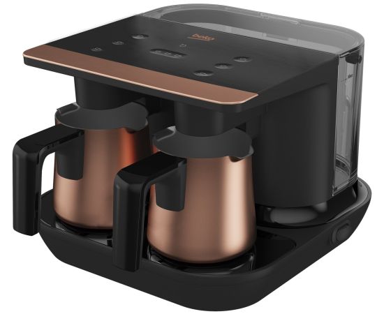 выбор размера чашки, выбор количества чашек, съемный резервуар для воды, мерная ложечка, автоматическая подача воды, количество турок - 2 шт., расчет на количество чашек: до 6 чашек
