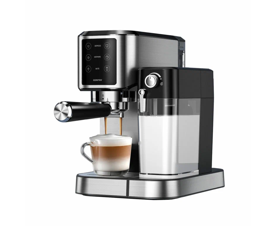 Кофеварка Centek CT-1169 <3в1> эспрессо 20 Бар + капучино + латте, 1л + 0,5л, 1450Вт, сенсор LED