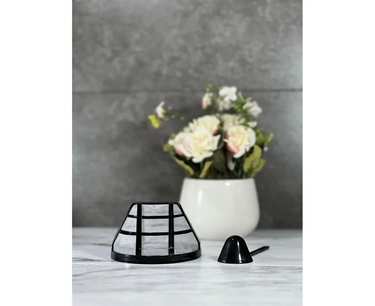 В комплекте: съемный фильтр, съемный кофейник, колба кофейника из термостойкого стекла, мерная ложечка.