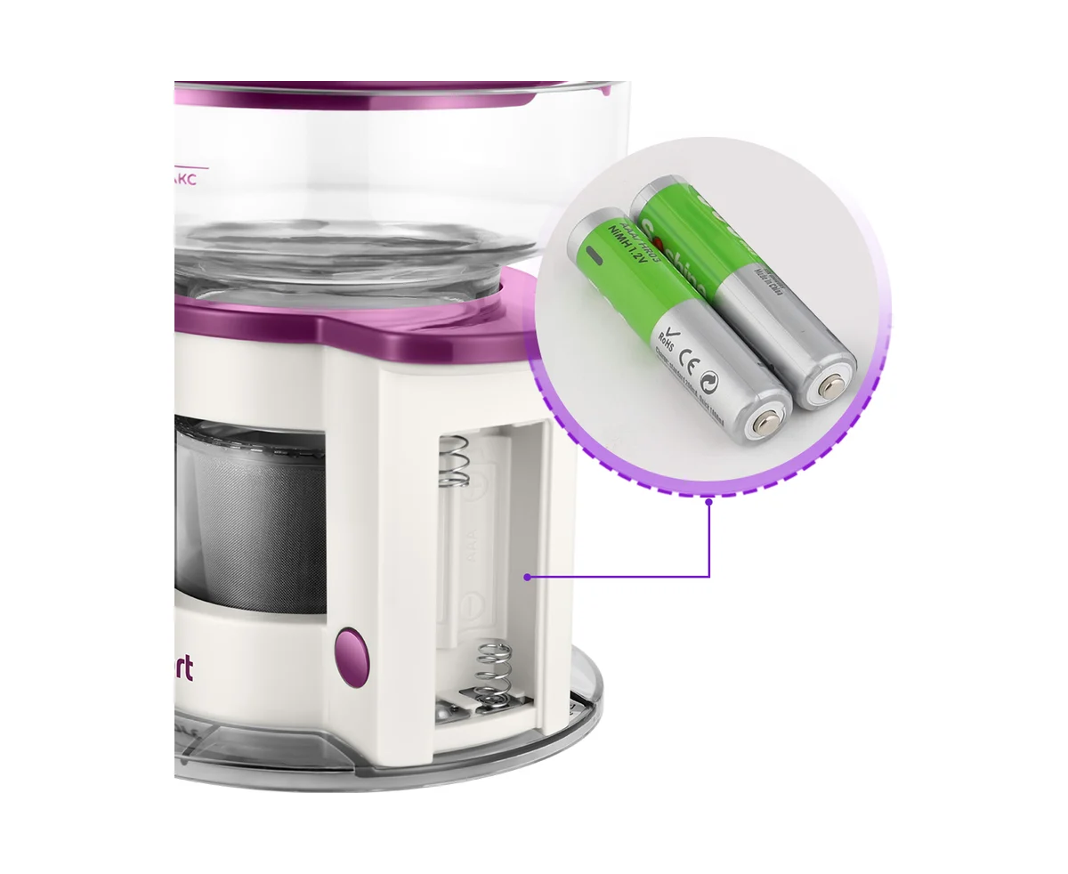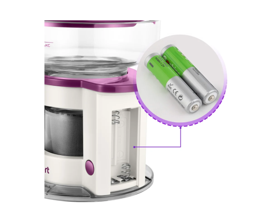 Внутри моторного блока кофеварки есть маленький мотор, который работает от двух батареек типоразмера ААА (батарейки в комплект не входят).