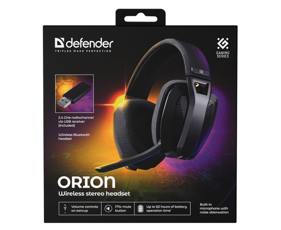 Компьютерная гарнитура DEFENDER Orion (Bluetooth,, 2.4G, микрофон с шумоподавлением) (bl (241509)