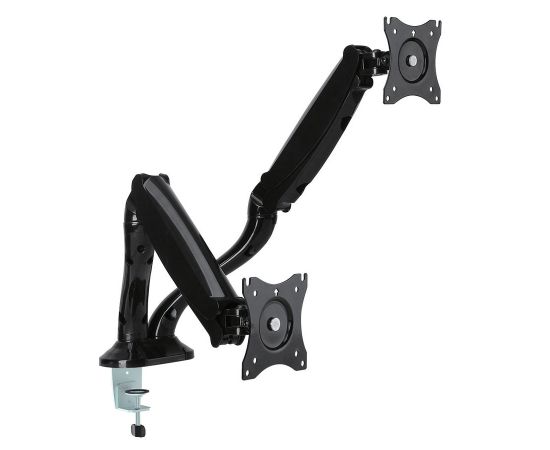 Надежно держит два монитора, большая свобода их расположения
