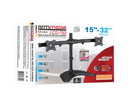 Кронштейн для мониторов Arm Media LCD-T52 черный 15"-32" макс.20кг настольный поворот и наклон верт.перемещ.