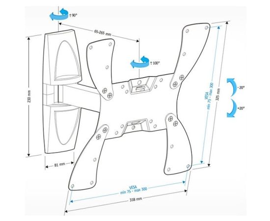 Угол наклона -20/+20 °