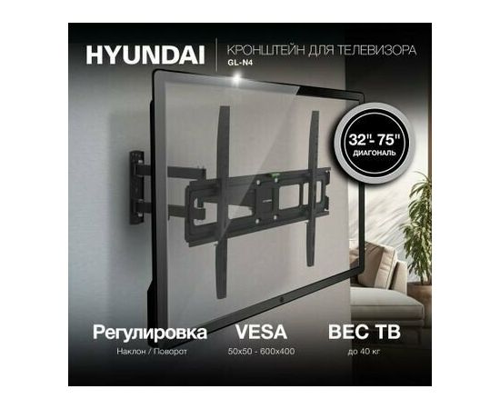 32"-75" Кронштейн Hyundai GL-N4 черный макс.40кг настенный поворотно-выдвижной и наклонный