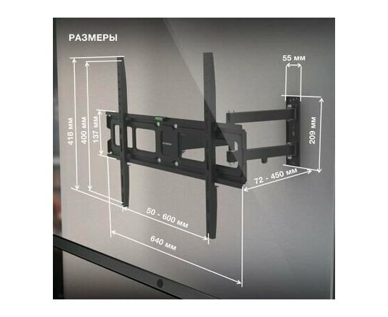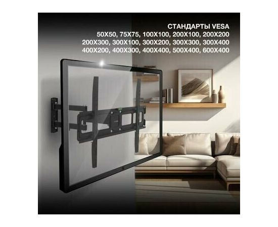 Стандарт Vesa: 50х50 мм, 75х75 мм, 100х100 мм, 200х100 мм, 200х200 мм, 200х300 мм, 300х100 мм, 300х200 мм, 400х200 мм, 300х300 мм, 300х400 мм, 400х300 мм, 500х400 мм, 400х400 мм, 600х400 мм;