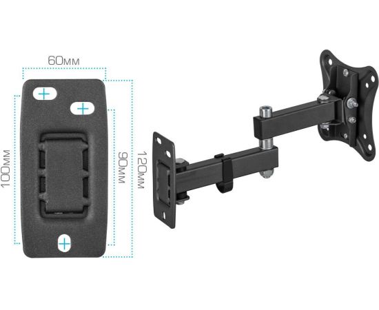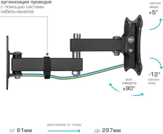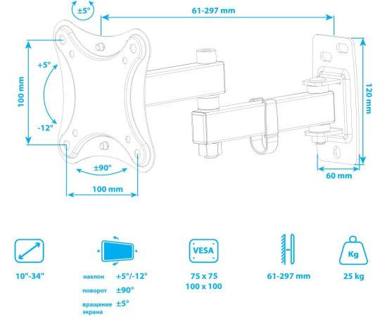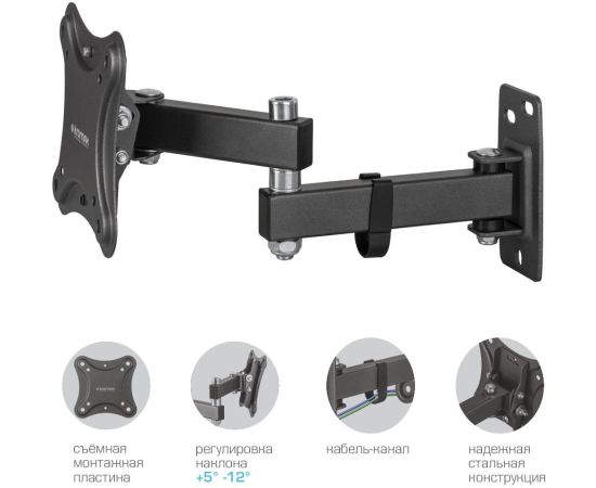 Кронштейн Kromax CORBEL-3 black, 10 шт/уп. Кр. стал. наст. для TV 10"-34", max 25 кг, 5 ст св., нак. +5°-12°,
