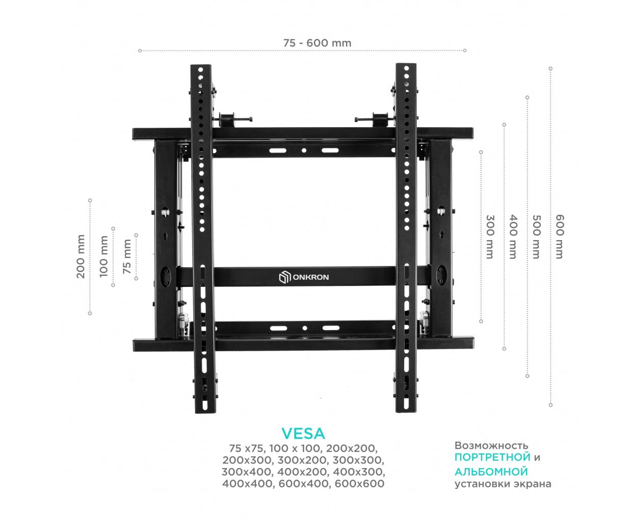 Стандарт Vesa: 100x100, 200x100, 200x200, 300x300, 400x400, 600x400, 75x75