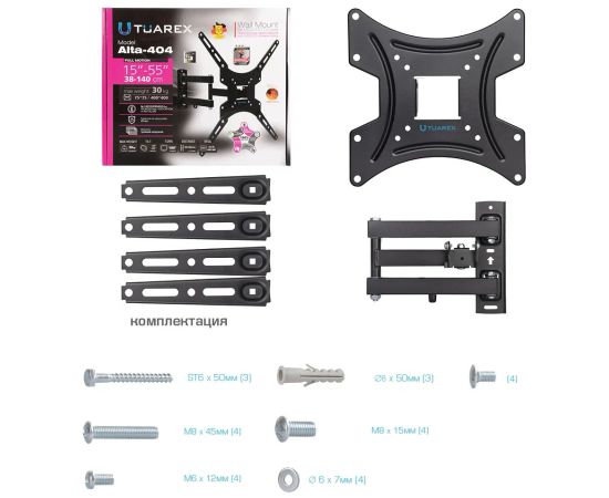 15"-55" Кронштейн Tuarex ALTA-404 черный max 30 кг, 4 ст св., нак. + 5° -15°, пов. 180°, от ст. 59-432 мм.