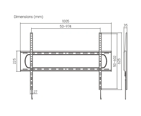 Поддержка крепления VESA: 100x100, 100x150, 100x200, 150x100, 150x150, 200x100, 200x200, 200x300, 200x400, 300x200, 300x300, 300x400, 400x200, 400x300, 400x400, 400x600, 50x50, 600x200, 600x300, 600x400, 600x600, 700x400, 75x75, 800x400, 800x500, 800x600, 900x600