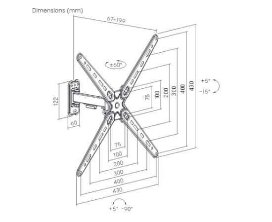 Расстояние от стены(мм):