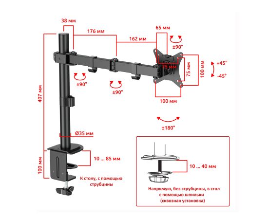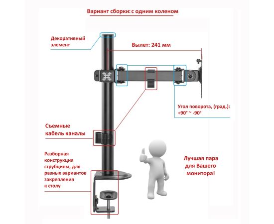 Тип кронштейна: Настольный со струбциной для монитора