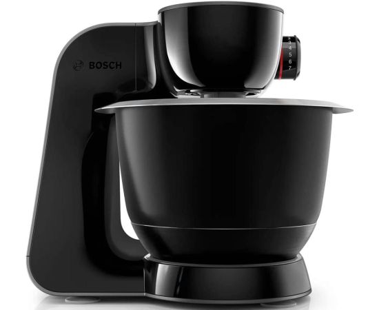 Кухонная машина Bosch MUM59N26CB черного цвета оборудована механическим блоком управления, позволяющим устанавливать одну из семи скоростей. Плавная регулировка делает эксплуатацию комфортной. Импульсный режим и планетарное смешивание обеспечивают удобство процесса готовки. Защита от перегрузки гарантирует длительный срок службы без поломок. Стальная чаша обладает объемом 3,9 л. Емкость можно мыть в посудомоечной машине или под струей воды. Ножки-присоски надежно фиксируют модель на столешнице и не позволяют двигаться во время работы.