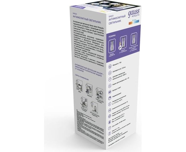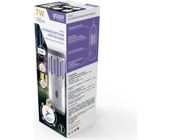 Антимоскитный светильник GAUSS Mosquito, 7 Вт, 3 AA, 1/40 GMQ03 – световое устройство, которое защищает от летающих насекомых как внутри помещения, так и снаружи, например, в беседке, террасе или туристической палатке.