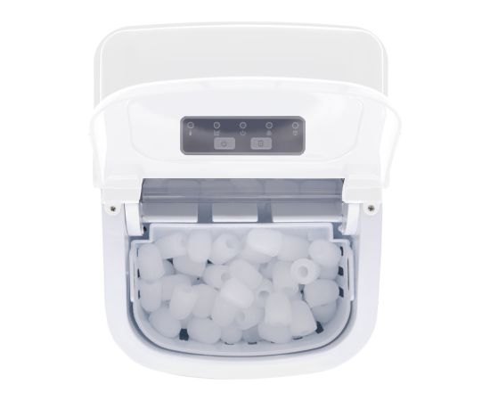 Генератор льда не требует подключения к водопроводу. Просто подключите устройство к сети, добавьте воду в резервуар, и выберите размер льда нажатием кнопки. Цикл приготовления льда длится от 6 до 13 минут, в зависимости от размера кубиков и исходной комнатной температуры. По окончании в корзине для льда окажется свежая порция. Льдогенератор останавливается автоматически, когда корзина для льда заполнена. Емкость для льда легко вынимается.