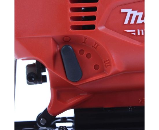 Прорезиненная рукоятка для крепкого хвата, удобный параллельный упор позволяет выполнять прямые и круговые распилы, могут использоваться пильные полотна толщиной до 1.7 мм.