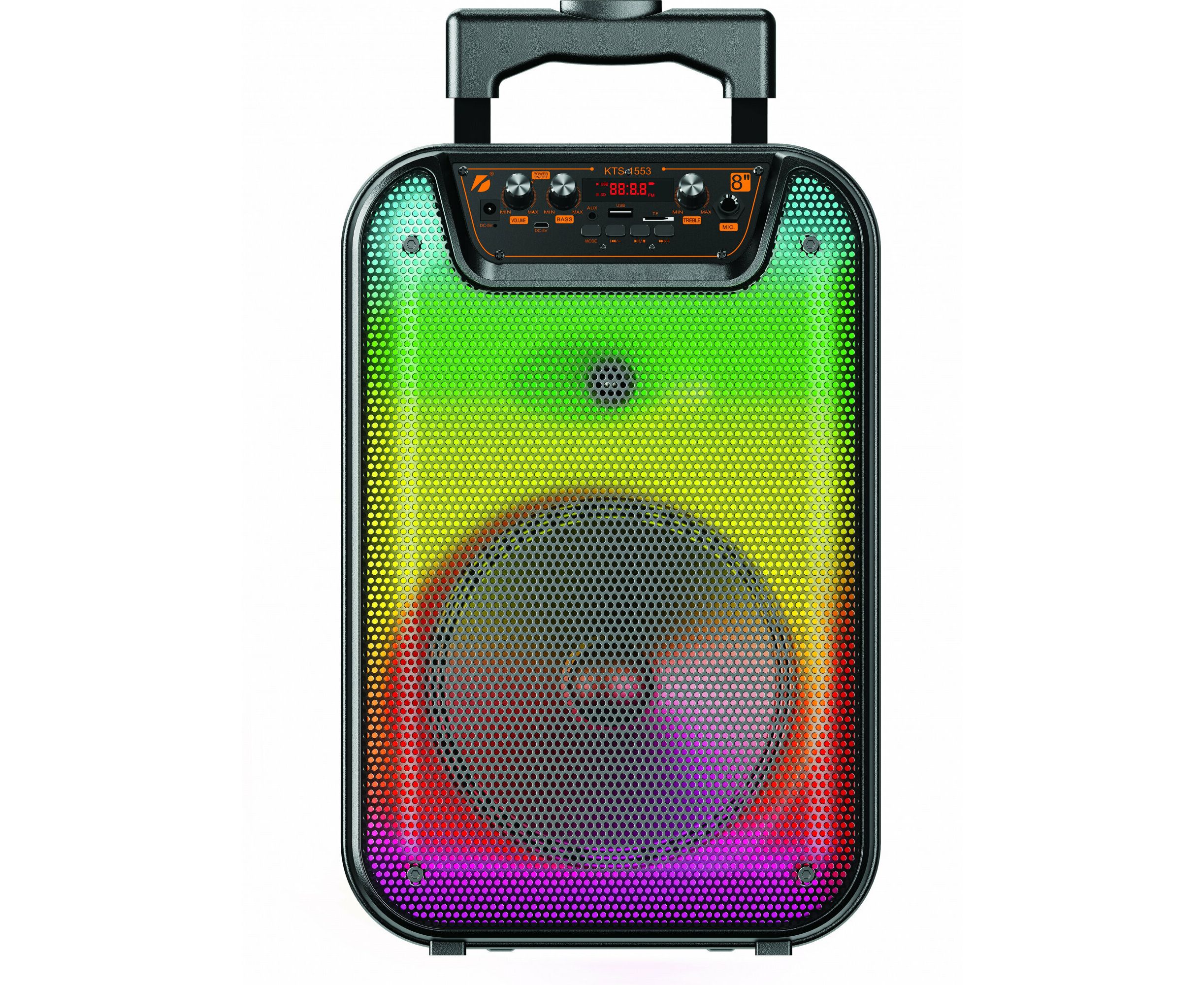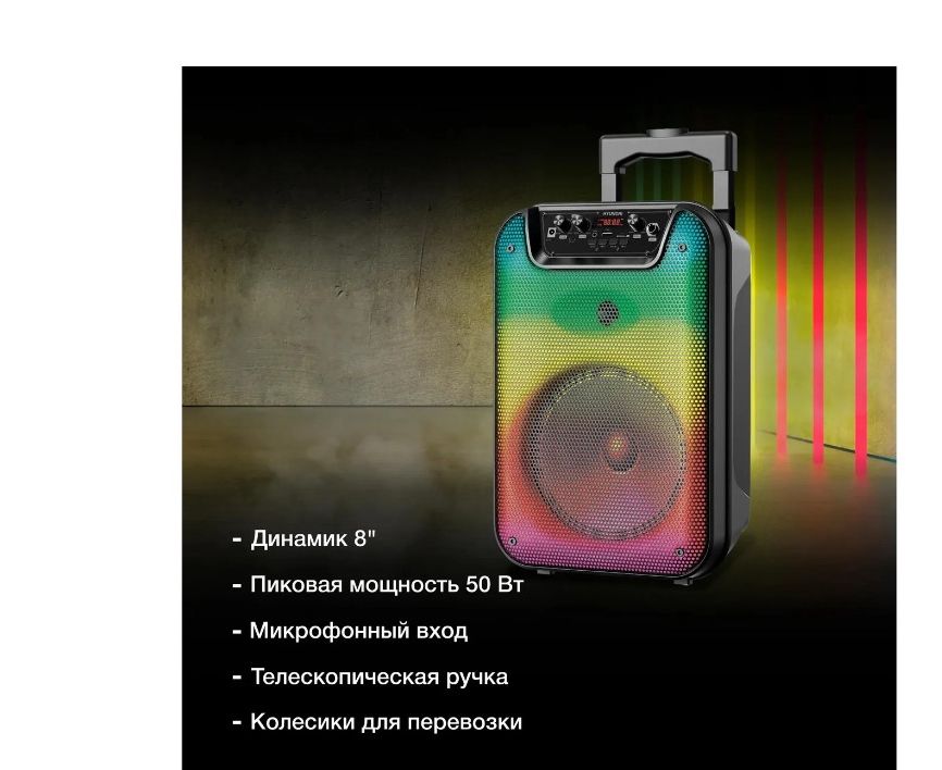 USB кабель, AUX кабель, проводной микрофон, пульт, адаптер