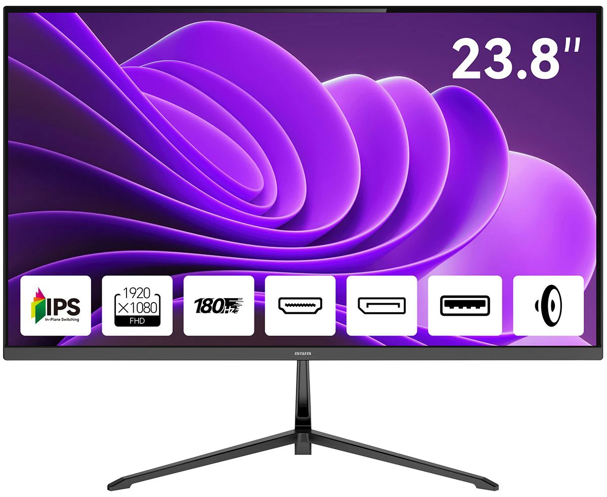 Монитор AIWA MD2410 Black IPS, 1920x1080, HDMI+HDMI+DP, 1ms, 178град./178град., 300cd/m, 1000:1, 180Hz, Spk