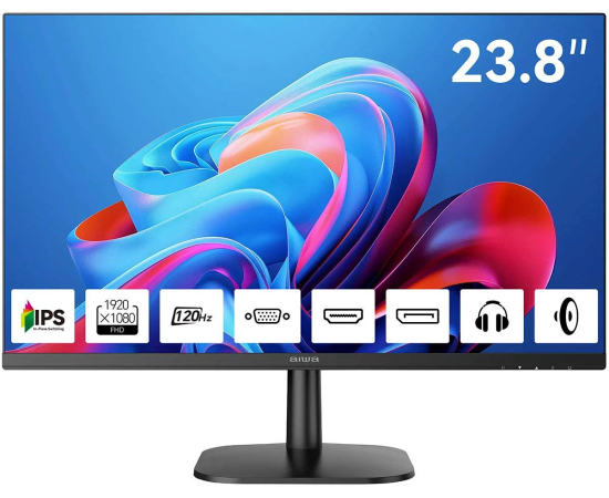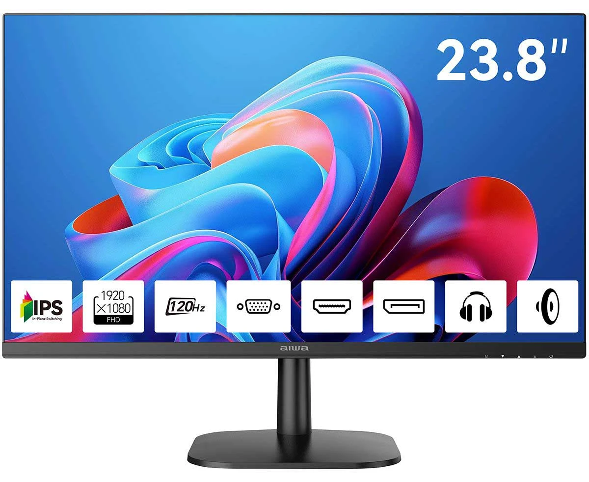 Монитор AIWA MF2410 Black IPS, 1920x1080, D-Sub+HDMI+DP, 4 ms, 178пр./178пр., 300 cd/m, 1000:1, 120Hz, Spk, внутр БП