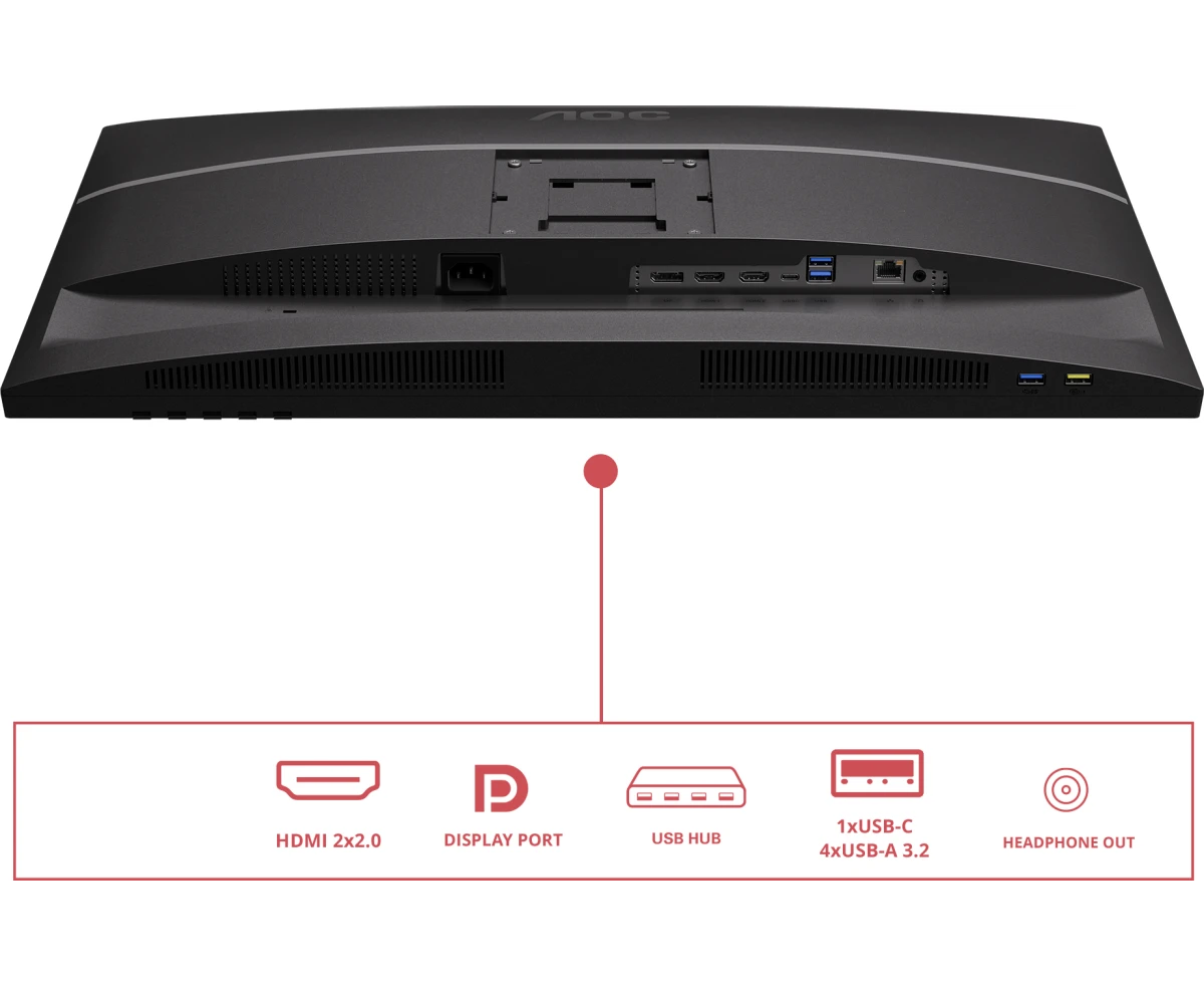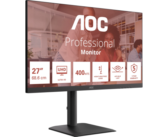 Монитор AOC U27E4CV Black 4K, IPS, 3840x2160, 60Hz, 4 ms, 178гр./178гр., 400 cd/m, +2xHDMI 2.0, +DisplayPort 1.4, DP Out, USB, USB-C, LAN, SPK