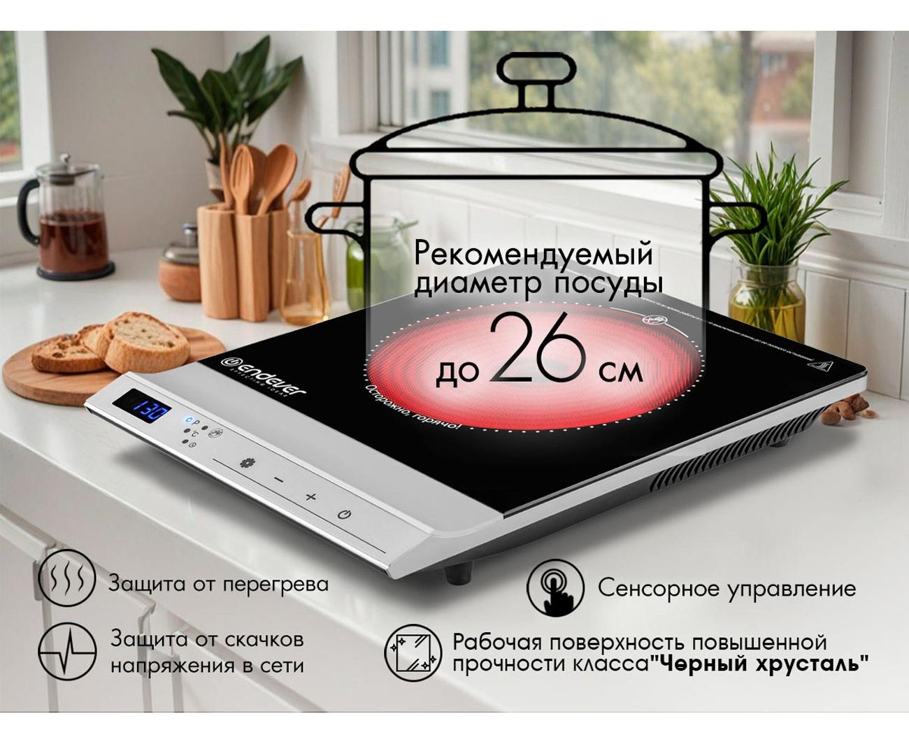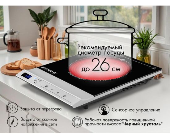 - Рекомендуемый диаметр посуды 26 см