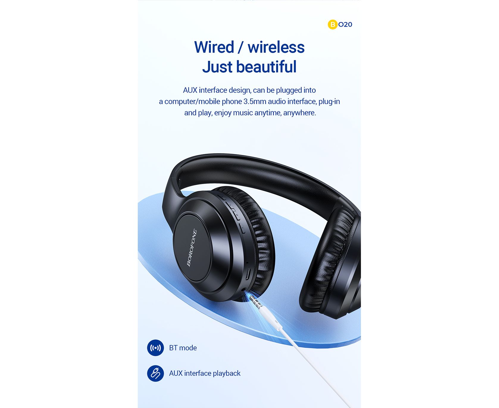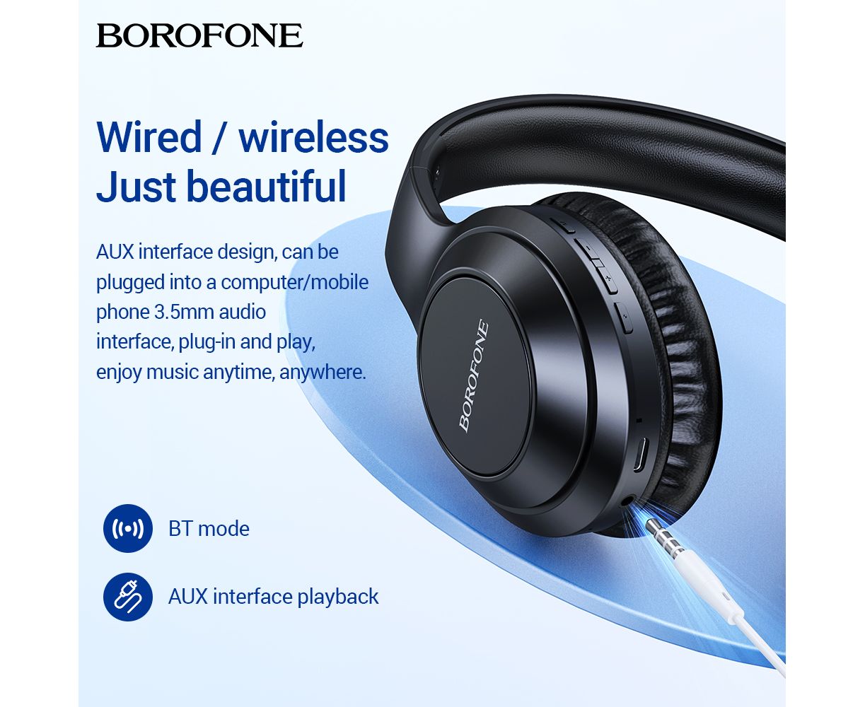 Наушники bluetooth полноразмерные BOROFONE BO20 Player BT (чёрный)