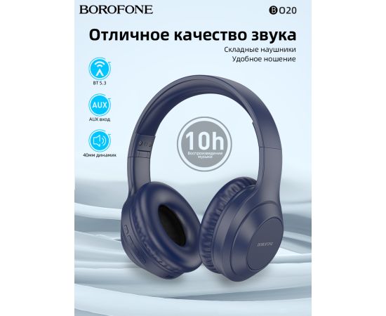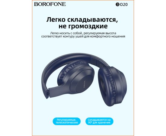 Наушники bluetooth полноразмерные BOROFONE BO20 Player BT (синий)
