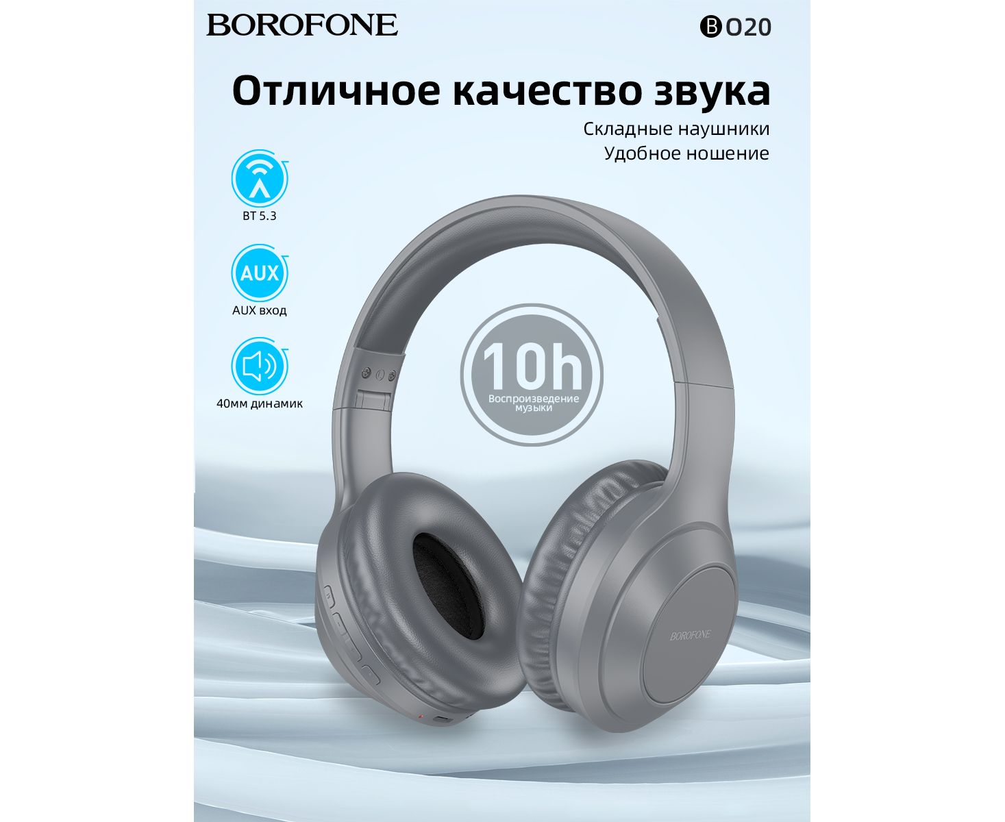 Наушники bluetooth полноразмерные BOROFONE BO20 Player BT (серый)