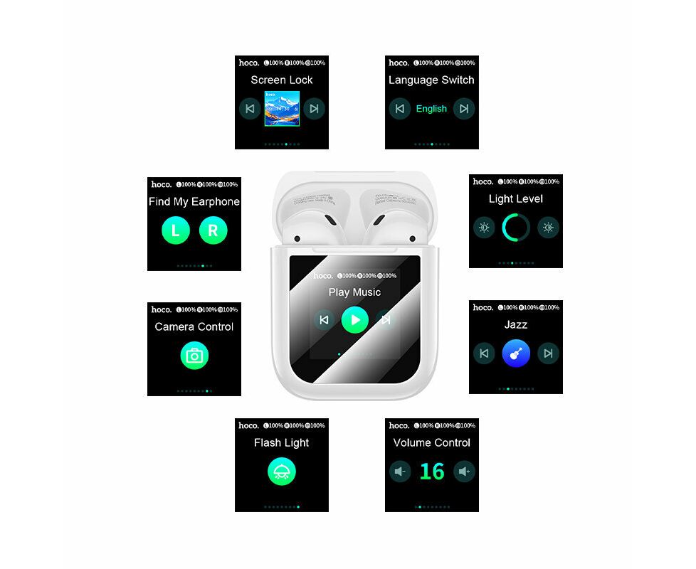 Оснащенный интеллектуальным сенсорным LED экраном, он позволяет управлять множеством функциональных настроек непосредственно с зарядного чехла. На экране отображается текущий уровень заряда батареи и точное время работы гарнитуры и зарядного чехла