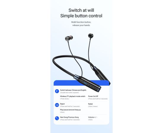 6. Поддерживает подсказки на китайском и английском языках: дважды щелкните многофункциональную клавишу в непарном режиме.