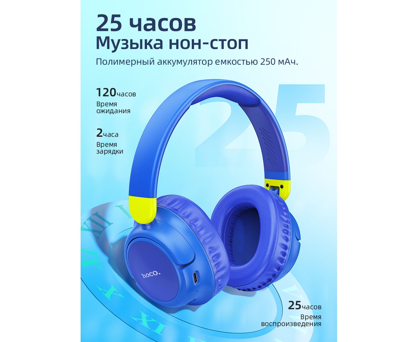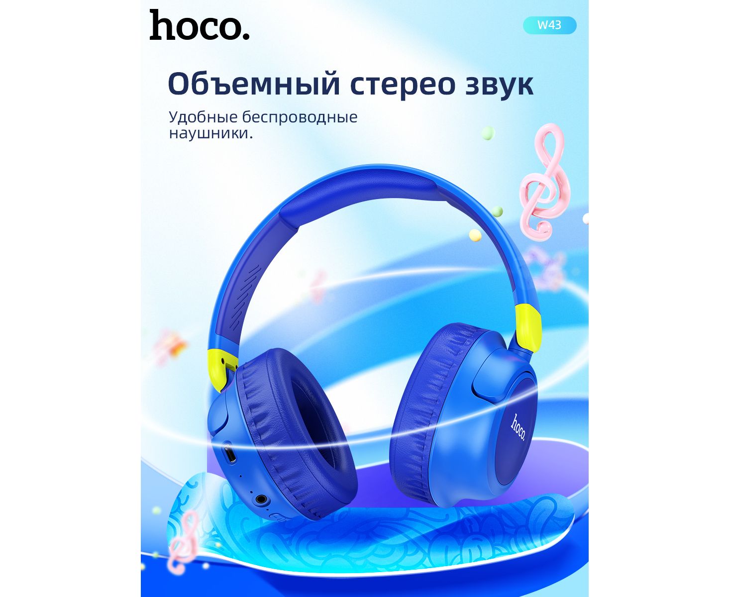 Наушники полноразмерные bluetooth HOCO W43 Adventure BT (синий)