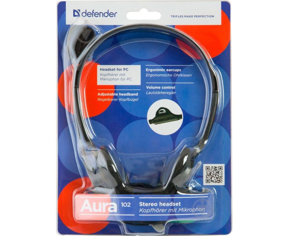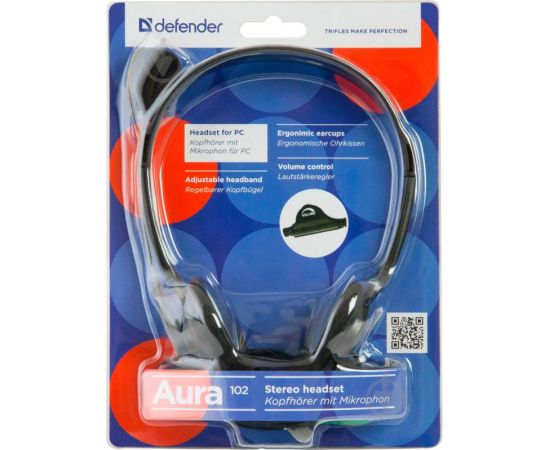 Гарнитура DEFENDER Aura 102 черный, кабель 1,8 м 63102