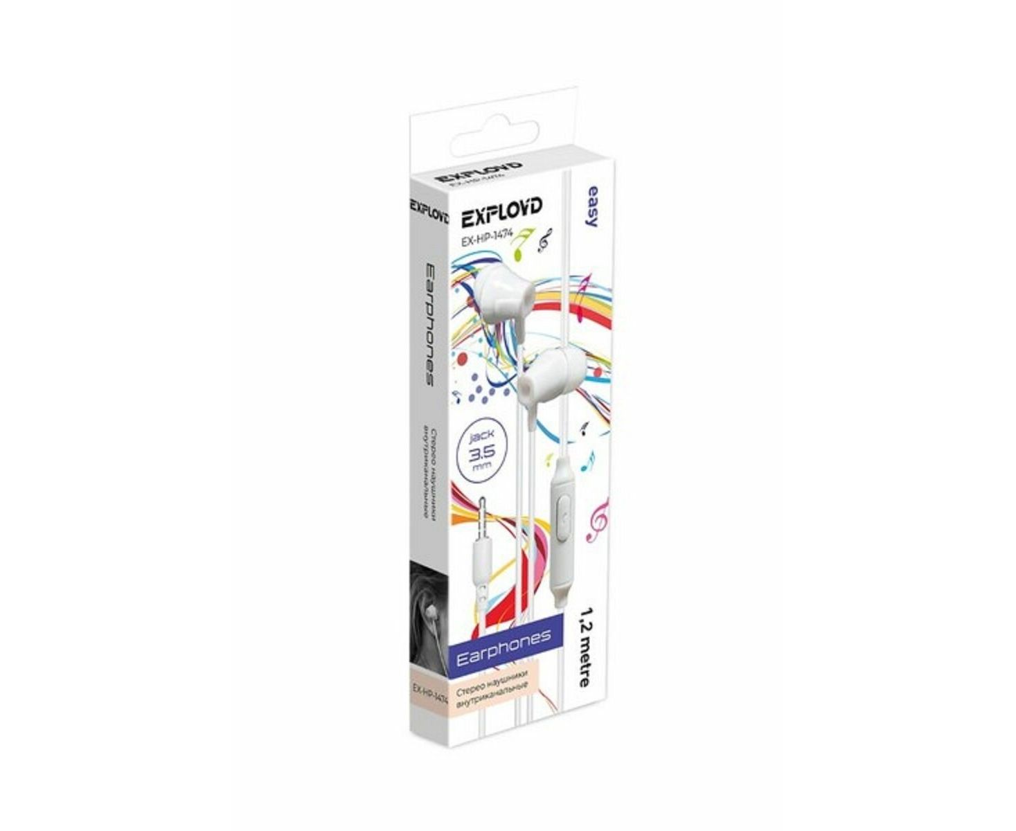 Наушники EXPLOYD EX-HP-1474 3.5mm/белый/1.2М/Easy
