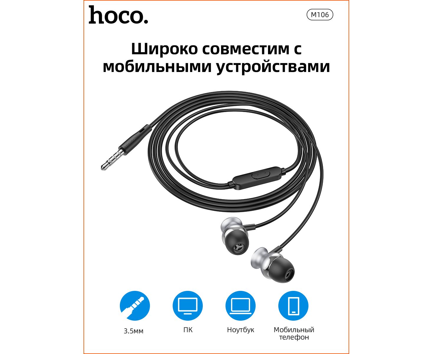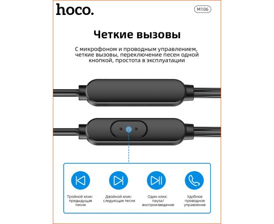 Наушники M106, Fountain metal universal earphones, HOCO, вакуумные, серые