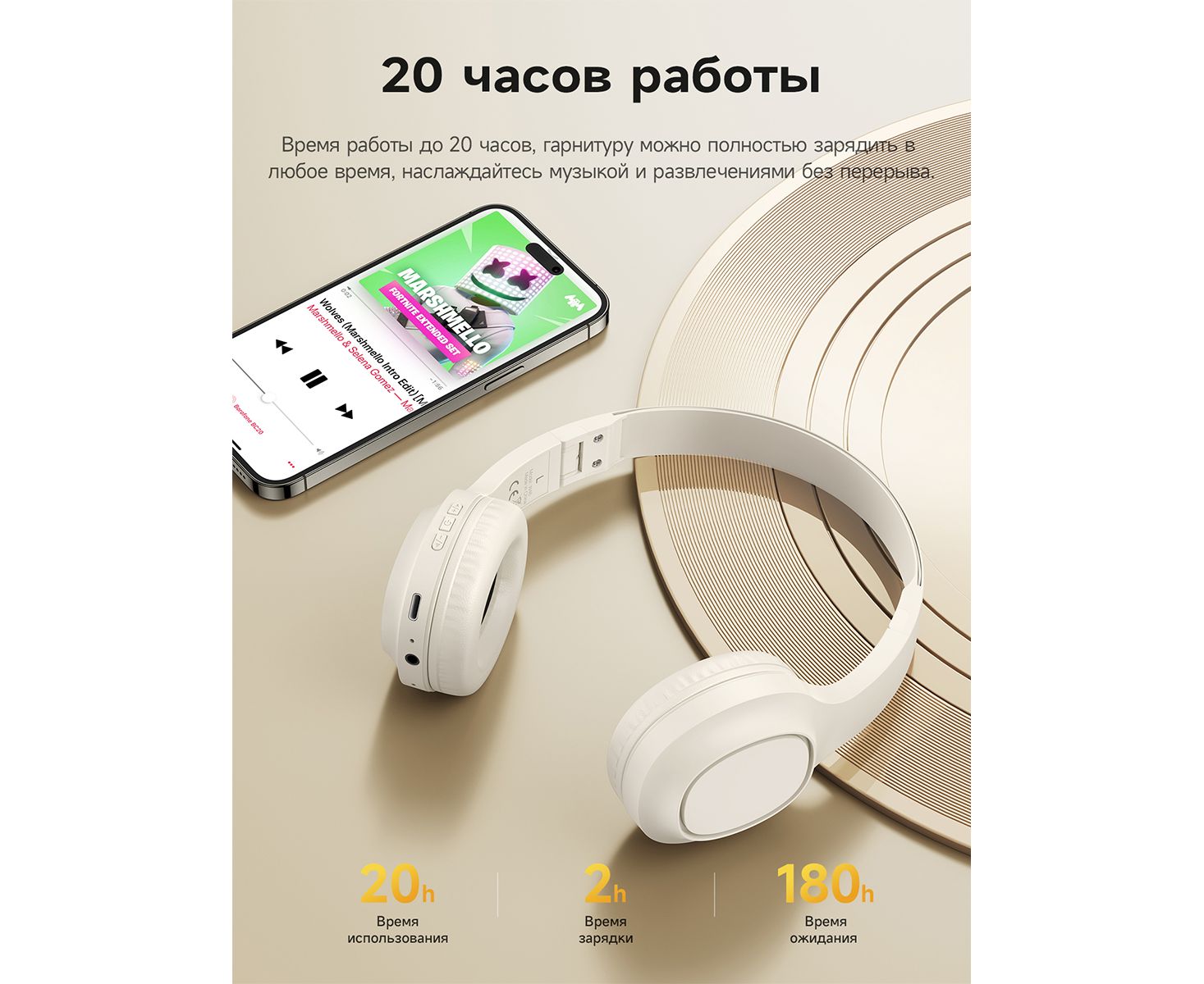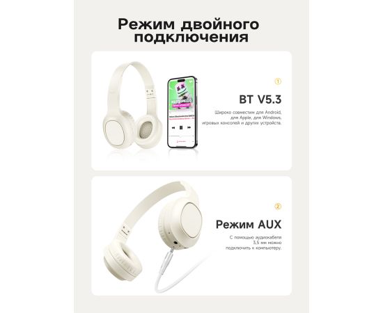 Наушники полноразмерные bluetooth HOCO W46 Charm (молочно-белый)