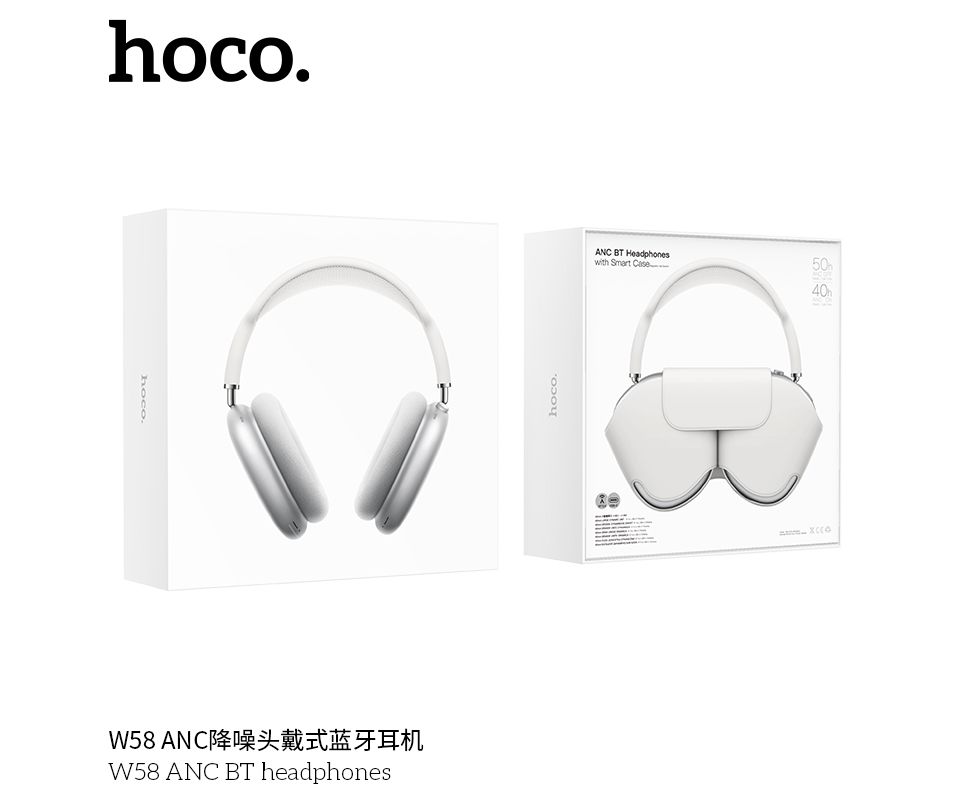 Наушники полноразмерные bluetooth HOCO W58 ANC BT (серебро) (акция)