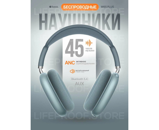Наушники полноразмерные bluetooth HOCO W65 Plus Happy ANC (голубой)