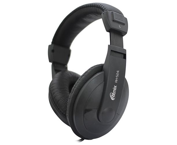 Наушники Ritmix RH-524 Black, мониторный тип, мягкий кожзам, O40 мм, 3.5 mm jack, кабель: 2 м