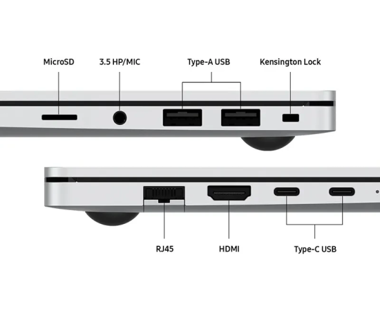 2 x USB-A 3.2 Gen2 (10 Гбит/с), 2 x USB-C 3.2 Gen1 (5 Гбит/с), HDMI 1.4, RJ-45, Jack 3.5 мм (микрофон/аудио)