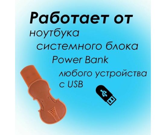 Работает от ноутбука, системного блока, Power Bank и других устройств, имеющих USB вход. Радиус работы составляет 3 метра. Изготовлен из ABS-пластика.