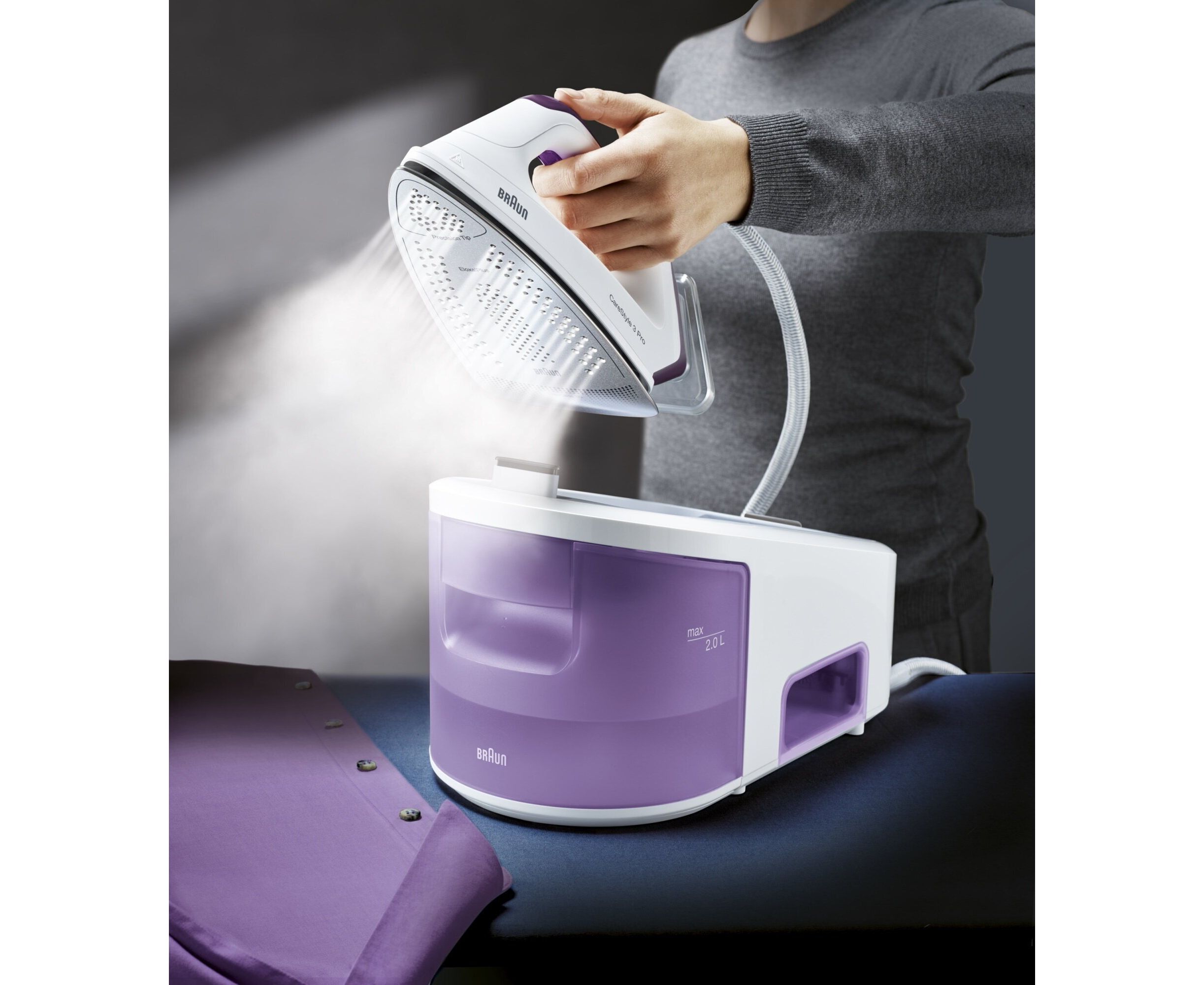 Парогенератор Braun IS3155VI освободит вас от утомительного отглаживания белья утюгом. С его использованием можно одинаково эффективно отпаривать деловые костюмы и очищать от бактерий всевозможные поверхности. Скорость подачи пара для модели достигает 125 г/мин. Объем резервуара для жидкости – 2 л – указывает на то, что его не придется пополнять слишком часто.