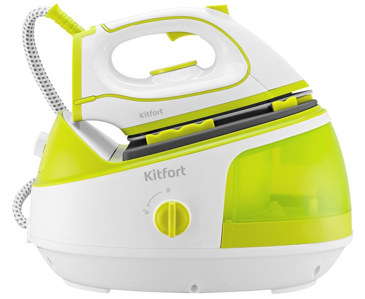Паровая станция Kitfort КТ-9120 это современное устройство для глажки, заменяющее утюг и отпариватель. Прибор состоит из утюга и корпуса со съёмным резервуаром для воды, где происходит её нагрев, обеспечивающий непрерывную подачу пара.