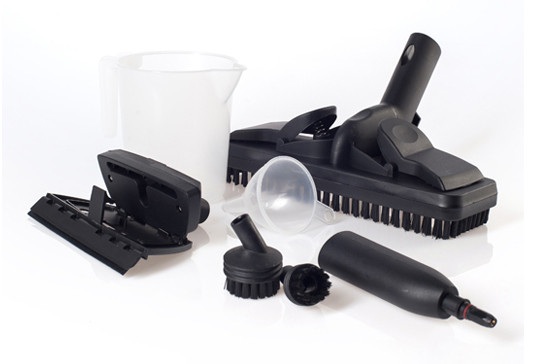 Принадлежности в комплекте: составная удлинительная трубка, тряпка для пола, скребок для стекла, круглая нейлоновая щетка маленькая, круглая нейлоновая щетка большая, мерная чашка, воронка