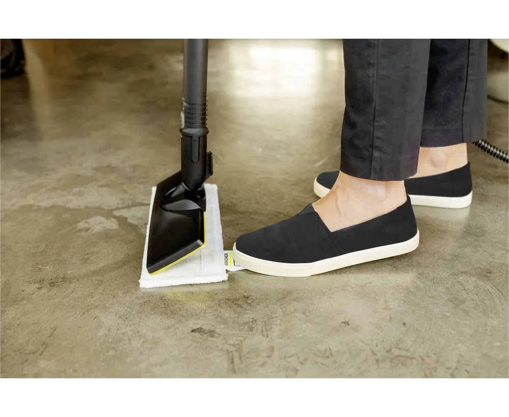 Паровой очиститель Karcher SC 2 Deluxe 1.513-400.0 — многофункциональное устройство, оснащенное различными насадками для уборки: для мытья полов, для сильных загрязнений, для труднодоступных мест, тонким соплом, насадкой из микрофибры, насадкой-щеткой. Салфетка для пола EasyFix с шарниром крепится на специальную липучку, позволяющую легко фиксировать и заменять ее. Объем резервуара для пара — 1 л.
