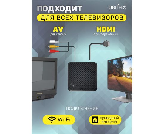 Приставка Perfeo SMART TV BOX "LOGIC 2/16", Allwinner H313, Android 10, 2Gb/16Gb, Пульт Bluetooth, (Арт. PF_A4555-C)